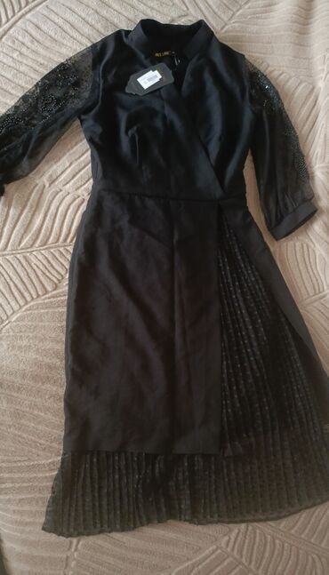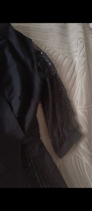 Платье вечернее почти новое вышито черным бисером размер М Don təzə kimi yaxası qolları muncuqlarla tikilib ölçü M