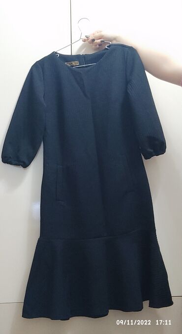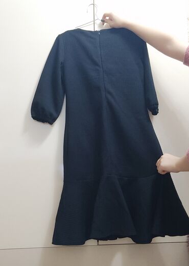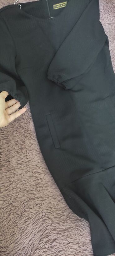 Qara-ağ tək çiyinli midi don - Rəng: qara əsas, ağ kontrast detal - Dizayn: asimmetrik, tək çiyin kəsimi; çiyində iri ağ bant/qovuq bəzək - Yaxa: qeyri-simmetrik, ağ haşiyə ilə vurğulanmış - Silue...