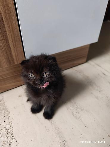 İlan: Yavru pişik - Cins: Şotland qıvrımqulaq (Scottish Fold) tipli görünüş - Yaş: Yavru - Rəng: Qəhvəyi-boz tabby naxışlı, ağ sinə ləkəsi ilə - Xüsusiyyətlər: Yumru üz, iri qaraşın gözlər, qısa v...