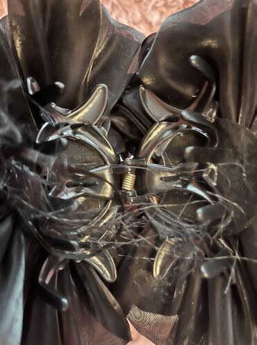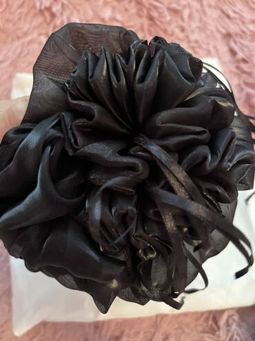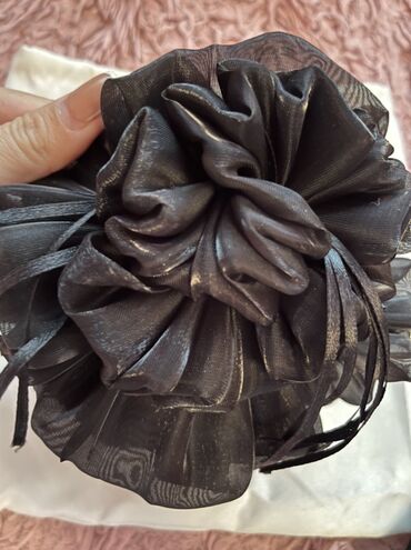 Qara şifon çiçəkli saç klipi