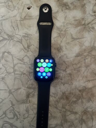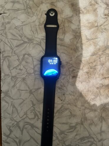 Ağıllı saat – toxunma ekranlı, kvadrat korpuslu, qara silikon qayışla.