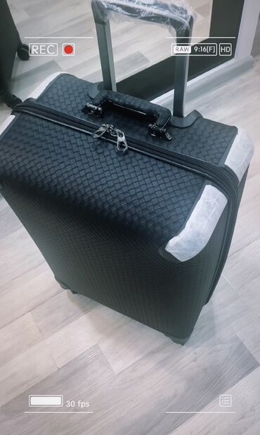 Səyahət çamadanı – sərt korpuslu, toxuma naxışlı, qara rəng -