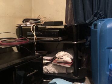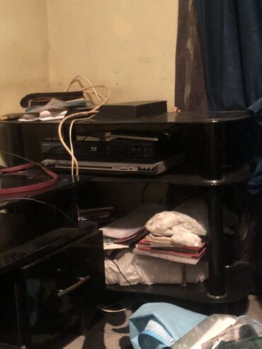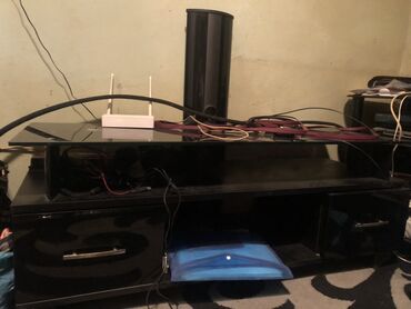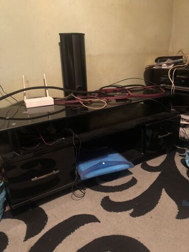 Qara şüşə TV stendi - Material: qalın temperli qara şüşə rəflər, möhkəm metal sütunlar - Konstruksiya: 2 mərtəbəli rəf sistemi; üst rəf TV üçün, alt rəf pleyer, konsol və aksesuarlar üçün - Künclə...