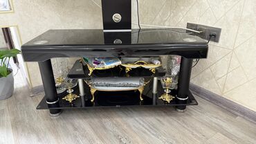 - Konstruksiya: 3 səviyyəli rəf sistemi; yuxarıda geniş TV platforması, ortada və aşağıda aksesuar/avadanlıq üçün rəflər