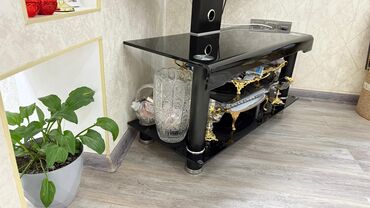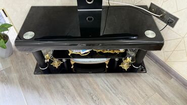 - Material: parlaq qara temperli şüşə və metal dayaqlar