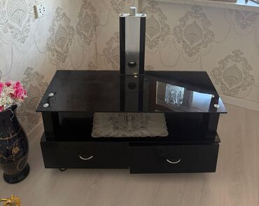 - Material: üst hissə möhkəm bərkidilmiş tünd/qaraltdılmış şüşə, korpus MDF/taxta kompozit, metal bərkidicilər və ayaqlar
