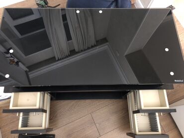 - Material: parlaq qara MDF korpus, üst hissə qalın şüşə panel (kənarları cilalı).