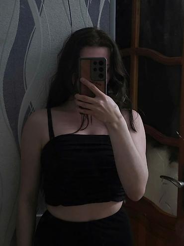 ZARA qadın t-shirt - Model: qısa kəsimli (crop), qısa qollu - Rəng: tünd boz/qaraya yaxın - Yaxa: klassik dairəvi - Parça: elastik, hamar toxuma (etiket: ZARA, Made in Bangladesh) - Ölçü: S (EUR S...