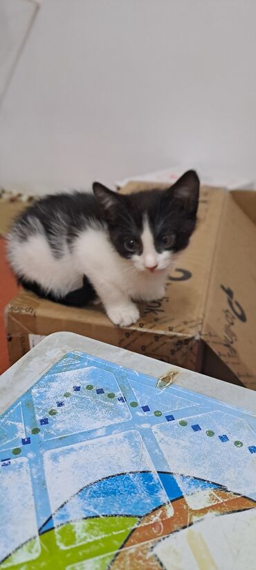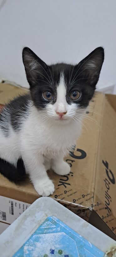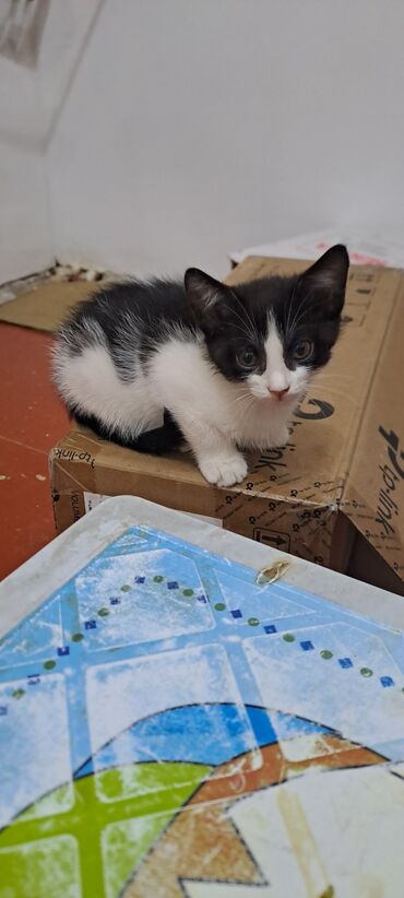 Məhsul: Qara-ağ rəngli balaca pişikв добрые руки, к лотку приучен, кушает самостоятельно