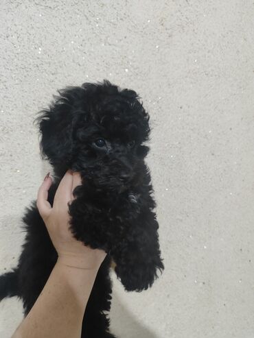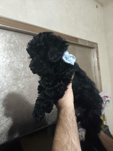 Qara, xırda ölçülü, buruq tüklü balaca it (oyuncaq tipli) satılır.
