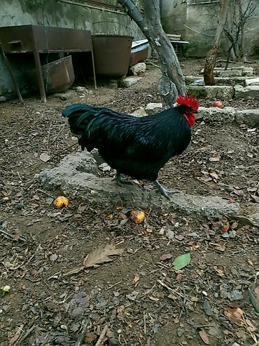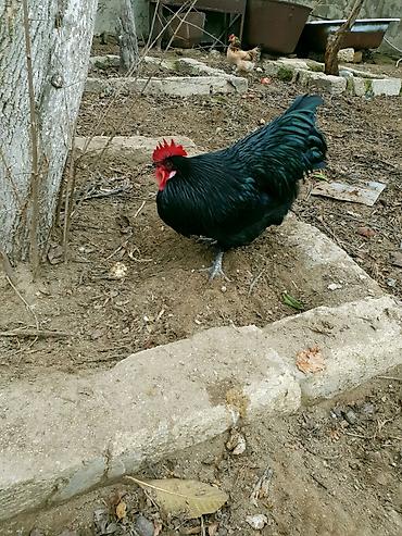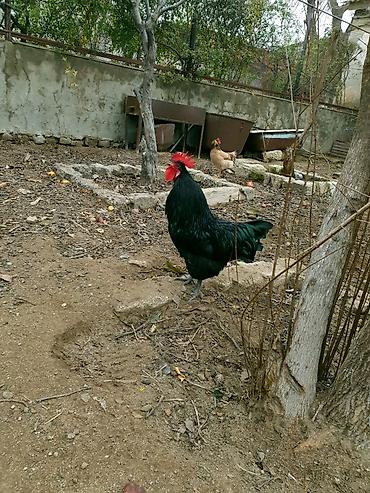 Cins: Yerli döyüşkü-üslubda xoruz (qara-qırmızı rəng çaları) Təsvir: - Güclü bədən quruluşu, uzun ayaqlar, iri daraq və sallamaq. - Lələklər qara fon üzərində qırmızı-kəhrəba ləkələrlə. - Aktiv və ...