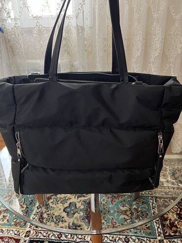Qara rəngli həcimli tote/şəhər çantası