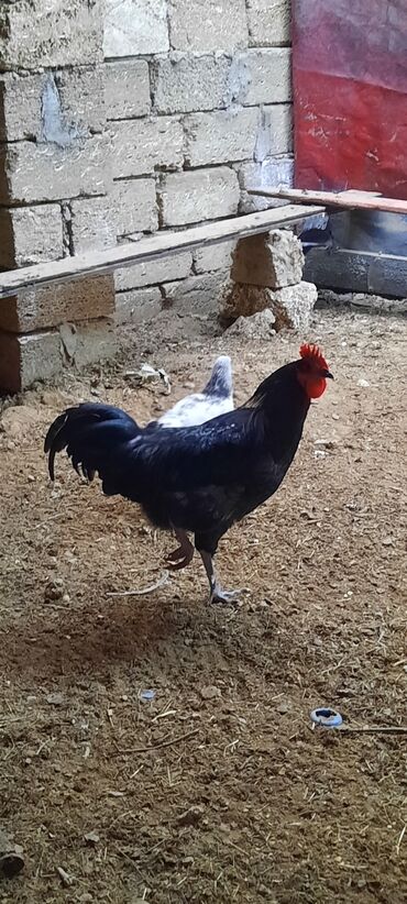 Xoruzdu 3 aylıq. Təsvir: - Həyət şəraitində saxlanılan, sərbəst gəzib-otlayan xoruz - Rəngi krem-ağ əsaslı, qırmızı-qəhvəyi ləkəli; quyruq lələkləri tünd-boz çalara malikdir - Qırmızı daraq və bal...