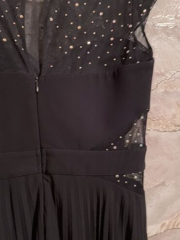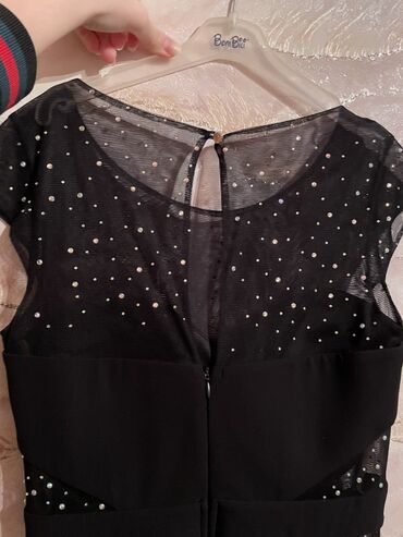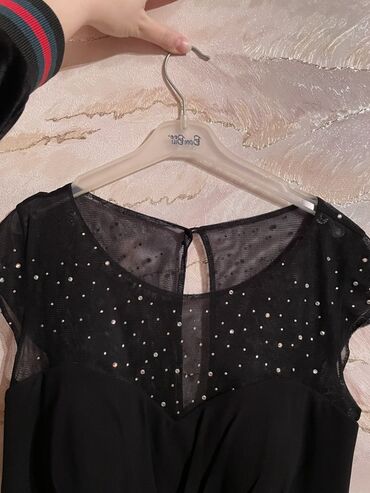 - Yuxarı hissə: nazik şəbəkə (tyul) parça, üzəri xırda parlaq daşlarla (strass) bəzədilib; dairəvi yaxa və kiçik qapaqlı qısa qol.