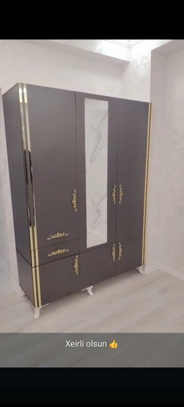 Bu qarderob yataq otağınız üçün praktik və zərif bir əlavədir. O, güzgülü mərkəzi paneli və iki yan şkaf bölməsi ilə möhkəm konstruksiyaya malikdir. Hər bir şkafın aşağı hissəsində saxlama üçün iki siyirmə mövcuddur. Şkafların ümumi görünüşü klassik üslubu müasir detallarla birləşdirir, bu da onu müxtəlif interyer dizaynlarına uyğunlaşdırır. Ayaqları sayəsində yerləşdiyi otağa yüngül görünüş verir və asan təmizlənməyə imkan yaradır. Bu qarderob geyimlərinizi və şəxsi əşyalarınızı səliqəli şəkildə saxlamaq üçün geniş yer təklif edir.