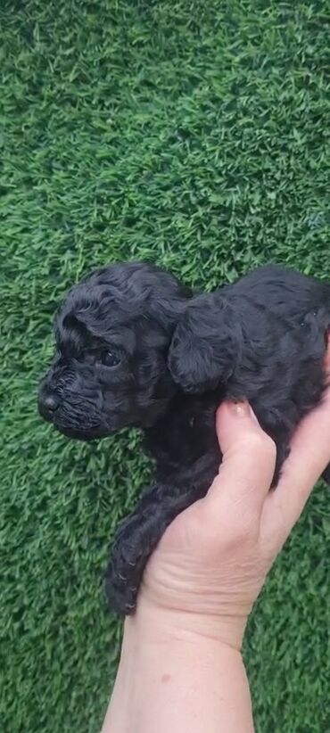 Saf qanlı Doberman Pinscher balası. Xüsusiyyətlər: - Rəng: qara/qəhvəyi (tan işarələr) - Cinsəxas atletik quruluş, güclü skelet və ifadəli baş - Qulaqlar formaya gətirilib; quyruq təbii - Aktiv, ç...