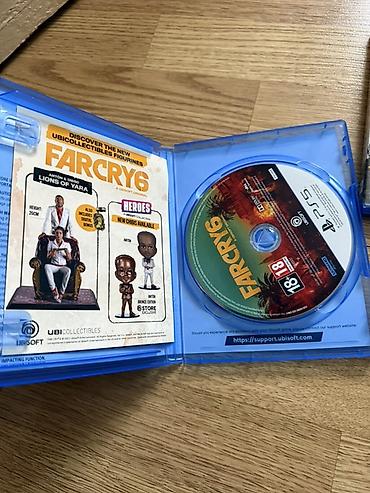 Qutu üzərində və diskdə “Far Cry 6” loqosu, PEGI 18 işarəsi və Ubisoft məlumatları yer alır. İç hissədə rəsmi dəstək linki göstərilib: support.ubisoft.com.
