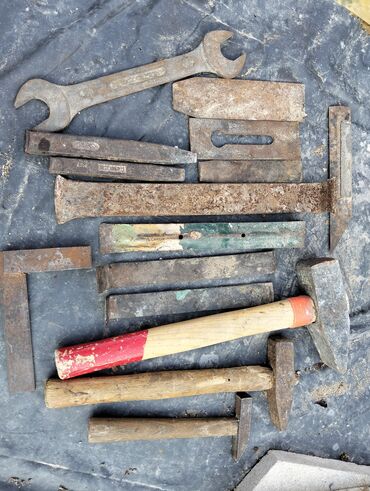 - Müxtəlif çəkic başlıqları və taxta dəstəkli çəkiclər