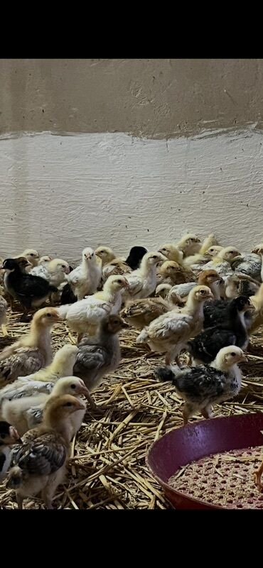 Məhsul: Cücələr / toyuq balaları (qarışıq rənglər) Təsvir: - Qrup şəkilində çoxsaylı ətlik–yumurtalıq istiqamətli cücələr. - Rənglər: ağ, ağ-qara ləkəli, həmçinin qırmızı-qonur tonlarda. - Saxlanm...
