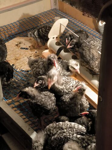 Məhsul: İri cücələr Xüsusiyyətlər: - Rəng: ağ lələklər üzərində qara- boz naxışlar - Növ: ət və yumurta üçün uyğun iri tip cücələr - Qidalanma: klassik qarışıq yemlə saxlanışa uyğun - Saxlama: yer...