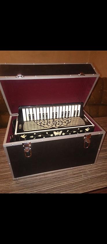- Klaviatura: ağ-siyah diyezlərlə 2 sıra xromatik düymə, taxta dillər üçün möhkəm mexanizm