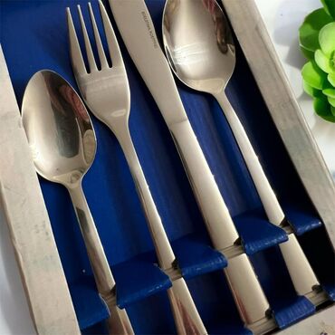 Almaniyadan alınıb.Brend mağazadan.Təmiz polad.1qutuda 1çay qaşığı q xörək qaşığı 1 çəngəl 1 bıcaq var.Arxa tərəfində zavodun möhürü var.30 avroya alınıb