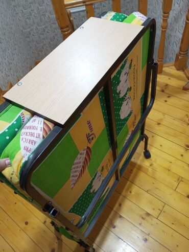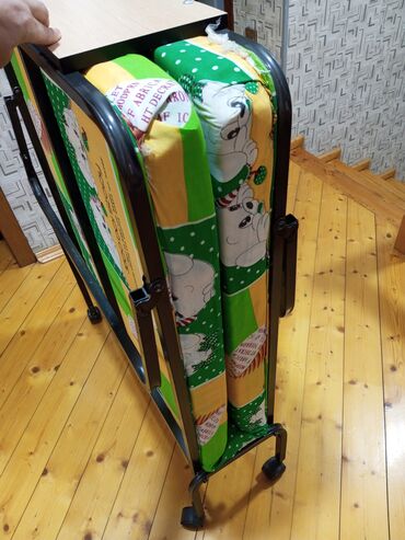 Uşaq üçün qatlanan çarpayı və döşək dəsti - Praktik qatlanan konstrukksiya: metal karkas sayəsində möhkəm və sabitdir, istifadə etmədikdə asanlıqla yığılaraq az yer tutur. - Ölçü: standart tək nəf...