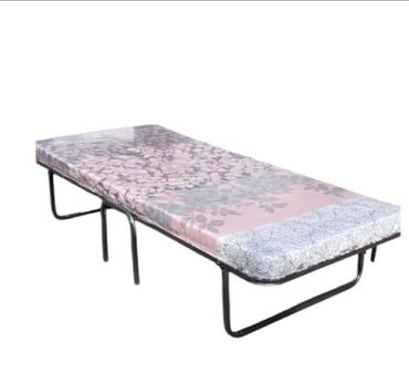 Yığılır-açılır tək nəfərlik çarpayı - Metallik karkas: möhkəm boru profilli konstruksiya, qatlana bilən mexanizm - Yaylı/ortopedik tipli döşək: üzərində çiçək naxışlı parça, qoruyucu sellofanla ör...