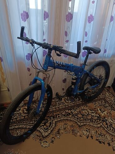 Mavi rəngli, qatlanan çərçivəyə malik spor velosipedi. Bu model çətin relyefdə sürmək üçün nəzərdə tutulmuşdur və möhkəm konstruksiyaya malikdir. Qatlama mexanizmi sayəsində velosipedin daşınması və saxlanması asandır, bu da onu məhdud yerə malik istifadəçilər üçün əlverişli edir. Böyük təkərləri və amortizator sistemi ilə hamar və rahat sürmə təcrübəsi təmin edir. Şəhər gəzintiləri və ya dağ yolları üçün uyğundur.