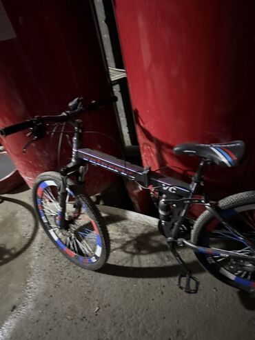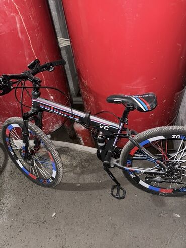 Qara rəngli, qatlanan dağ velosipedi. Bu velosiped asanlıqla daşınması və saxlanması üçün dizayn edilmiş qatlanma mexanizminə malikdir. Ön və arxa təkərlərdə tormoz sistemi və amortizatorlar mövcuddur. Təkərlərin kənarlarında qırmızı və mavi rəngli dizayn elementləri velosipedə cəlbedici görünüş verir. Həm şəhər içi istifadə, həm də dağlıq ərazilərdə gəzintilər üçün uyğundur.