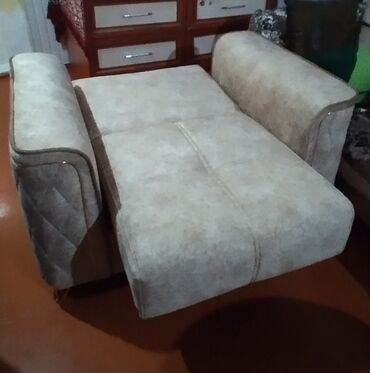 Transformasiya olunan kreslo-çarpayı - Rəng: boz - Mexanizm: önə doğru açılır, çarpayıya çevrilir - Aşağıda geniş saxlanclar (çekmece) var - Yumşaq parça üzlük, düz xətəli dizayn - Ölçülər: - Üm...