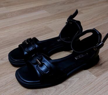 Qara dəbli qadın sandal - Brend detalı: üst hissədə kəsmə loqolu