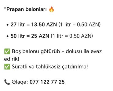 Qaz balonları və aksesuarları - Müxtəlif həcm və ölçülər: kiçik portativ balonlardan iri məişət balonlarına qədər. - Material: qalın divarlı polad korpus, daşıma üçün möhkəm tutacaqlar. - Rənglər:...