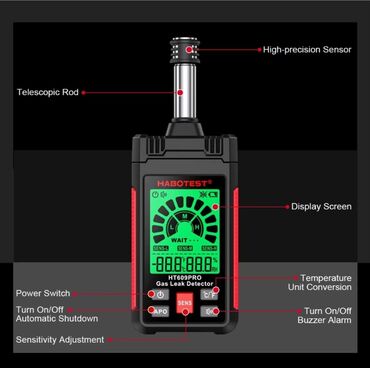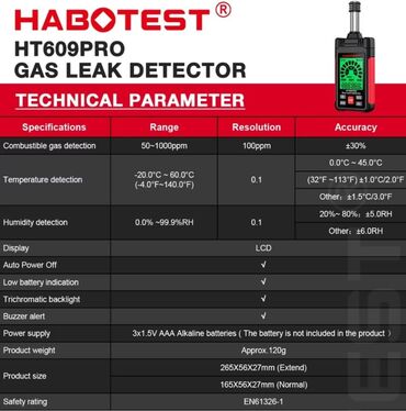 Bu cihaz, tez və etibarlı şəkildə qaz boru kəmərində alışan qaz sızmasını aşkar etmək üçün, eyni zamanda yüksək dəqiqlikli temperatur və rütubət sensorlarından istifadə etməklə, cari mühitin nisbi rütubətini və temperatur cihazlarını ölçmək üçün istifadə olunan yanar qaz sızması detektorudur.