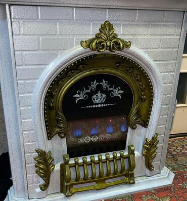 Dekorativ klassik dizaynlı elektrik sobası/şömine. Gümüşü rəng, relyefli naxışlar və arkalı dekor panel ilə. Ön hissədə qoruyucu barmaqlıq, yan tərəfdə idarəetmə düymələri. Şüşə ön paneldə Behkaran...