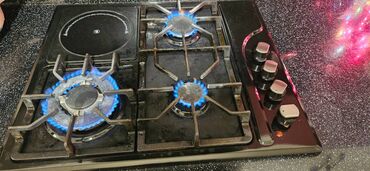 Qaz sobası və plitə – REGULAR markası - Üst hissə: 4 qaz ocağı, dəmir ızgara - İdarəetmə: Ön paneldə 5 düymə (ocaqlar və soba üçün ayrı idarəetmə), göstərici lampası - Soba: Şüşə qapı, daxili şkaf...