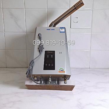 Qazla işləyən divar tipli su qızdırıcıları (geyzer) – paslanmayan polad gövdə və elektron idarəetmə paneli ilə.