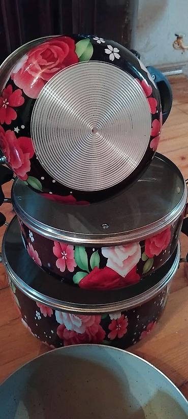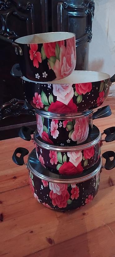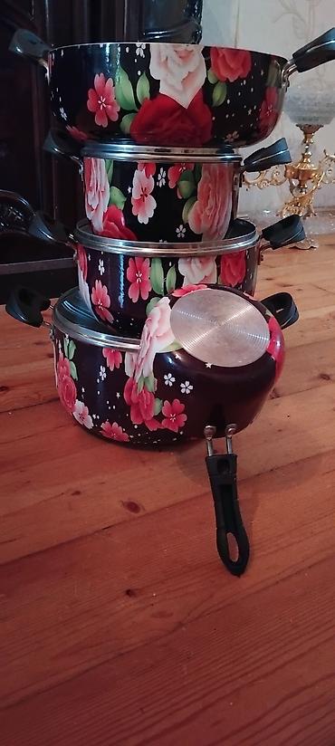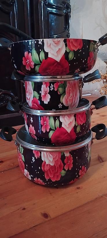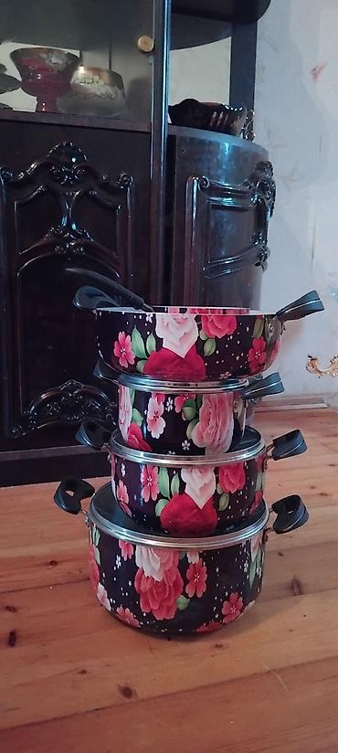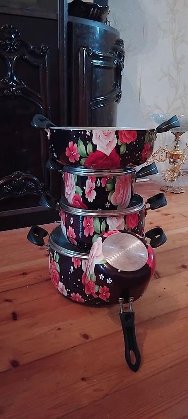 Rusiya istehsalı qazan desti 12 predmet 6 eded qazan.1.5 lt,2 lt,2.5lt,3lt,3.5 lt,5.5lt Dem çayniki 1lt Kovş 1.5lt Miska 1.5lt,2lt,4lt Çaydan 3.5 lt