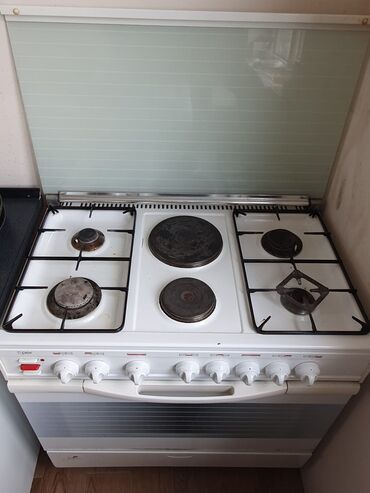 Quraşdırılan qaz-elektrik qarışıq panel (3 qaz ocağı + 1 elektrikli şüşə-keramika disk). Kredit - Marka: Maqna (panel üzərində “Magna” işarəsi görünür) - Rəng: qara, şüşə səth - Ocaq sayı: 4 zon...