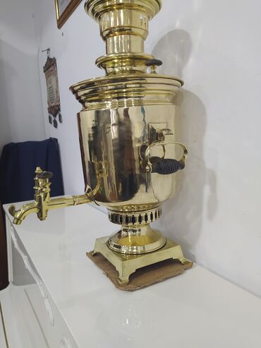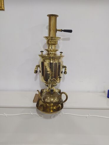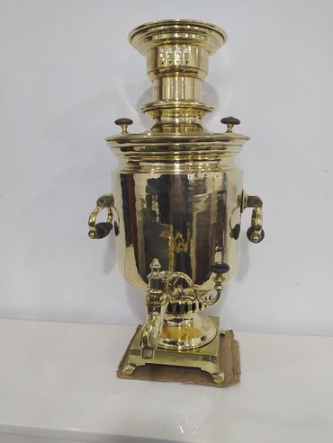 Klassik rus samovarı – dekorativ naxışlı metal gövdə və möhkəm ayaqlıq