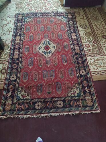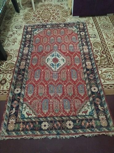 Əl toxuması xalça - Forma: düzbucaqlı, saçaqlı uclar - Toxuma növü: əl işi, yundan - Rəng palitrası: tünd qırmızı, yaşıl, qara və sarı tonlar - Üzəri: mərkəzdə medalyon-kompozisiya, gül naxışları ...