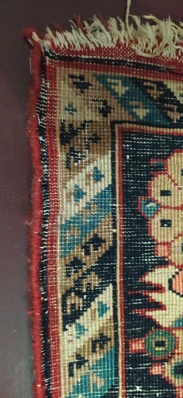 - Material detalları: təbii yun hissiyatlı xov, kətan/yonqar əsaslı arqa toxunuş; haşiyələrdə rəng keçidləri və əl işi bərabərsizliyi görünür