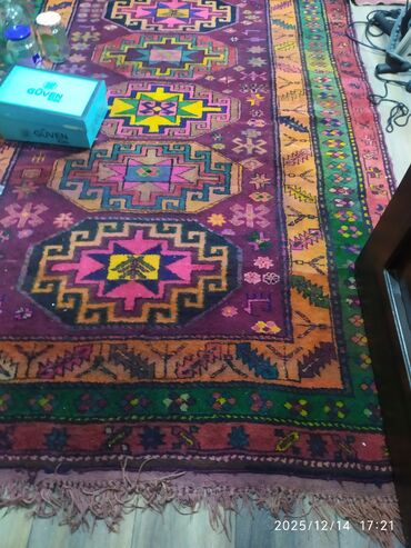 Əl toxuması xalça - Naxış: mərkəzdə ardıcıl çoxbucaqlı medalyonlar, künclərdə və haşiyələrdə klassik ornamental motivlər - Rəng palitrası: tünd bənövşəyi/çam-xamralı tonlar, narıncı, qırmızı, yaşı...Giriş•Qeydiyyat