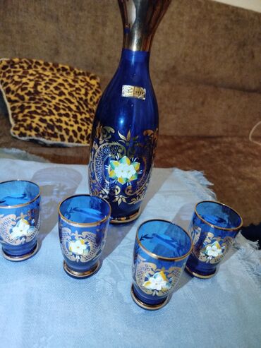 Qəhvə dəsti, rəng - Göy, Bohemia, 4 nəfərlik, Çexiya