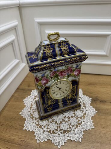 Qədimi farfor saat İdeal vəziyyətdə 24 K qızıl işləməli