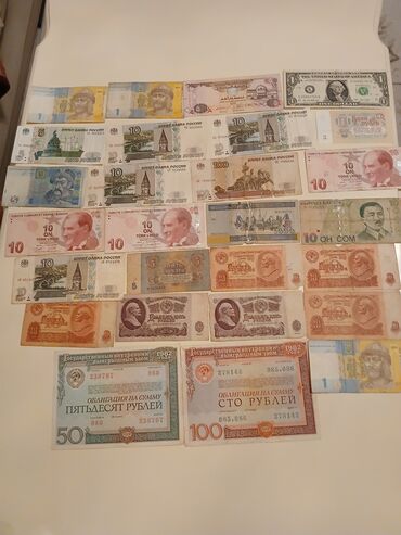 - SSRİ dövrü kağız pulları: 1, 3, 5, 10, 25, 50 rublluq nominallar; üzərində Lenin portretləri olan müxtəlif illərə aid nümunələr.