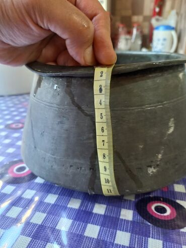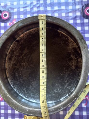 Ağ qazandı, dəmiri qalindi, 80-ci illərindi. Diametri 22 sm, alt hissəsi diametri 28 sm. Paslanmayan materialdi.