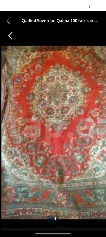 YeniQədimi Sovetdən Qalma 100 faiz təbii yun tərkibli çox Gözəl Yumşaq keyfiyyətli xalcadir, tam ideal vəziyyətdə , görünüşü möhtəşəmdir hər evə yaraşandır.