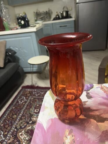 - Ayrı şəkildə: parlaq qırmızı-narıncı (ombre) dekorativ şüşə vaza.