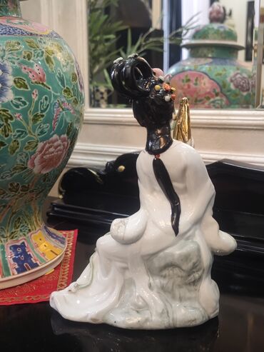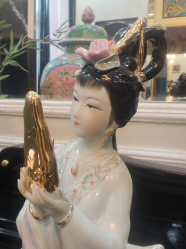 Qədimi təmiz farfor "Geyşa güzgüyə baxır" heykəli el işi Çin istehsalı